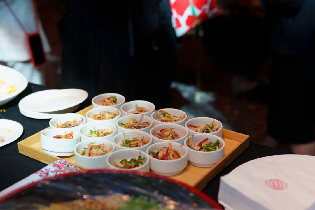 色香味俱全,好看更好吃。宾客们沉浸于广府美食的独特魅力中——醇厚回甘的东甲陈皮炖鸭汤,以十年陈皮的馥郁芬芳巧妙中和鸭肉的丰腴,让法国嘉宾领略到粤菜“醇而不腻”的养生智慧;东江手撕盐焗鸡在“捞起”时的热闹仪式感,更将广府宴席的喜庆氛围推向高潮;而现磨的西关黑芝麻糊,以其绵密细腻的口感和浓郁香气,为这场味觉盛宴画上完美句点。法国嘉宾纷纷赞叹:“这不仅是一道道佳肴,更是东方美食艺术的极致呈现!”